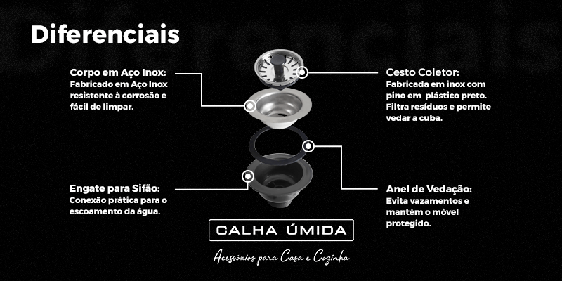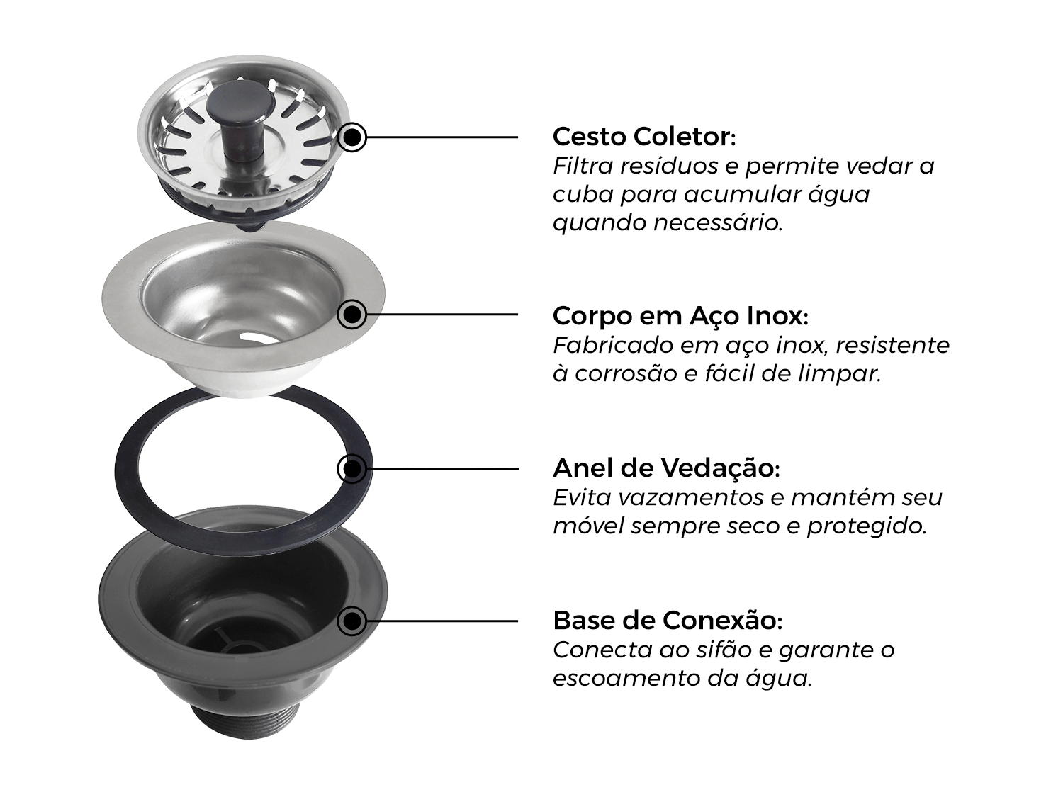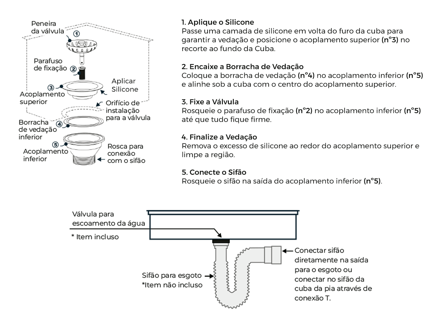 é compatível com diversos modelos de cubas e pias. O encaixe