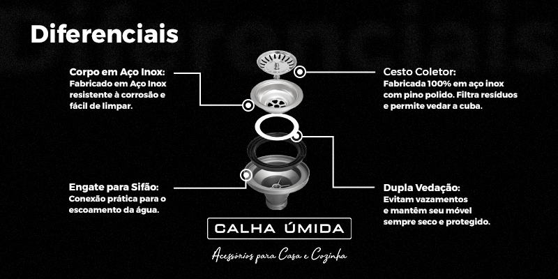 é compatível com diversos modelos de cubas e pias. O encaixe