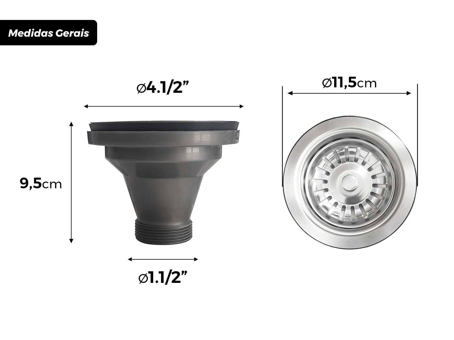 Já a saída inferior possui encaixe de Ø1.1/2", o modelo padrão utilizado em sifões,