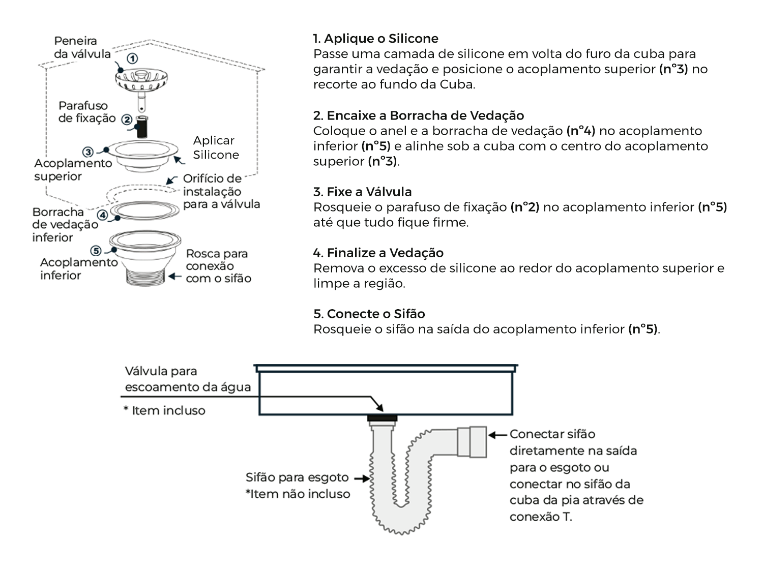 de vedação e conectar ao sifão.